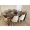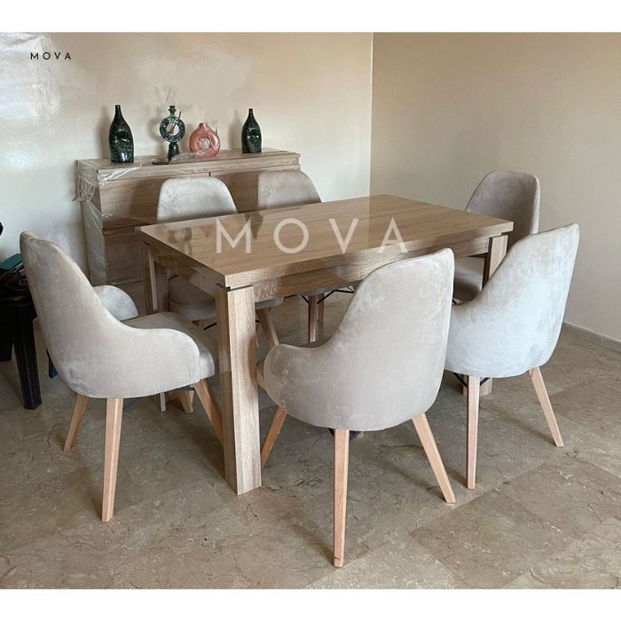 Table en bois avec 6 chaises beiges élégantes